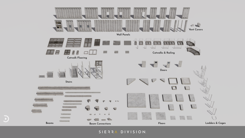 These premium assets are intricately crafted, placing a firm emphasis on realism to lend a true-to-life quality to your industrial environments. Each asset, from wall panels to support columns, uses textures and designs that mirror the authentic wear and tear seen in real-world industrial settings.