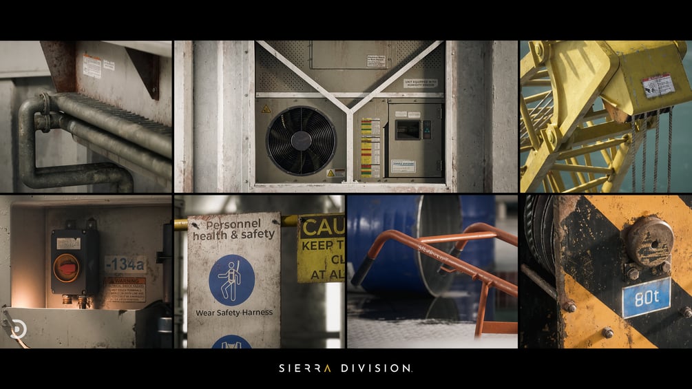 - Spline blueprints for the ropes, hoses, and cables throughout the scene (Easily merged for export or RTX Shadows)